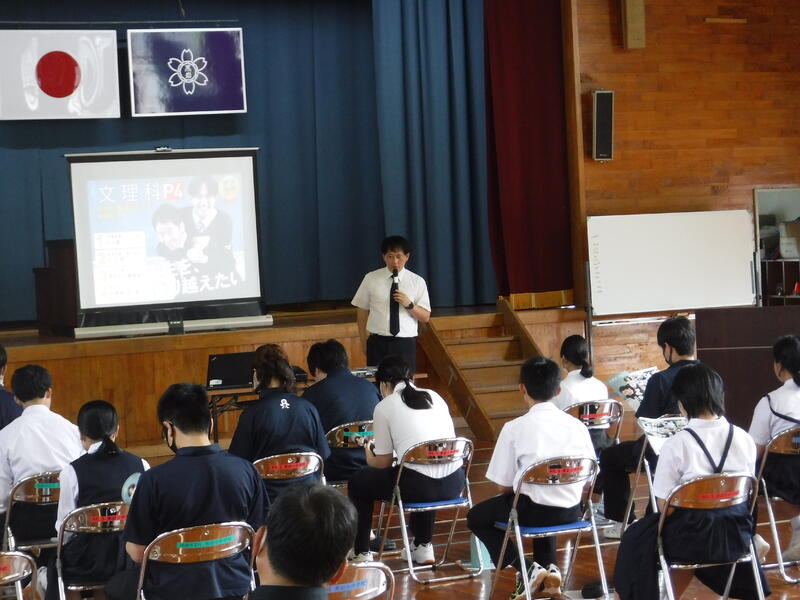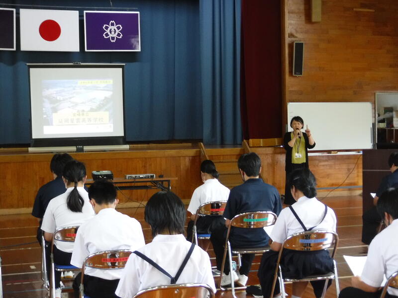 第2回目の高校説明会がありました。今回は、延岡工業、延岡商業、門川、日章学園、聖心ウルスラ学園の5校の先生に来ていただき、説明をしていただきました。中1~3年生が自分の将来に向けて、どんな高校があるのか、どんなことを高校で学んでいくのかを詳しく聞くことができました。2回に渡り、説明を聞いたことで、これからの進路選択の際のヒントをもらうことができました。