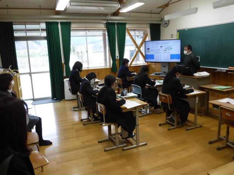 各学年とも今年の締めくくりとして、1年間の成長した姿を保護者に見ていただきました。参観授業の後、第2回目の学校保健委員会も開催しました。今回は学校薬剤師の佐々木美由紀さんに来ていただき、小学生には「くすりの正しい使い方」、中学生には「ダメ。ゼッタイ 薬物乱用防止教室」と題してお話をいただきました。専門的な立場から児童生徒に分かりやすく説明をしていただきました。自分の心と体を健康に保つための心得を学ぶことができました。