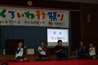 心配されていた天候にも恵まれ(多少風は強かったですが)、11月3日(日)に多くの方が黒岩小中学校に集まり、くろいわ秋祭りが盛大に開催されました。当日は「小中学生の発表」に始まり「魚のつかみ取り」「カラオケ大会」「焼きそば他の販売」などコンパクトなスペースを有効に活用されたもので、地域の方も大変お喜びになられたと思います。今後とも学校と地域が一体となって、盛り上げていきましょう。