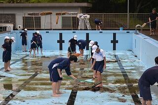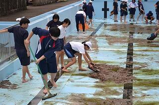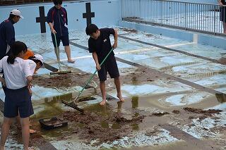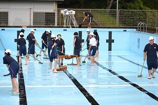 6月6日(木)雷の心配もありましたが、何とか予定通りプール清掃を行う事ができました。中学部からでないとプールの中の清掃はできないため、中学1年生の中にはこの清掃を楽しみにしていたとか・・・小学部もプール周りの清掃を一生懸命頑張りました。これから水をため、25日(火)のプール開きに向けて準備を進めていきます。