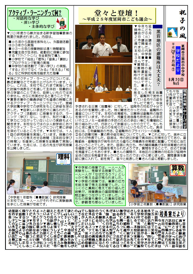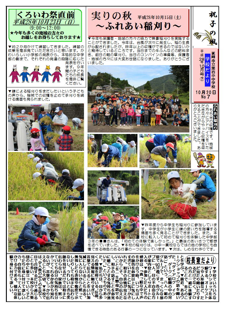 本Webページの著作権は、黒岩小中学校が有します。無断で、文章・画像などの複製・転載を禁じます。