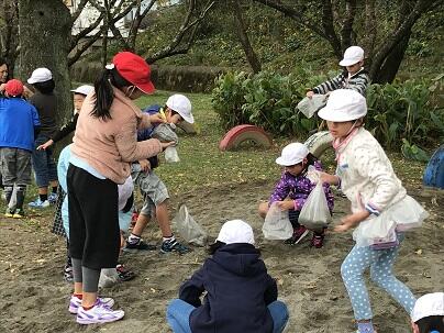 1組は、4時間目に「1Kgってどれぐらい?」という課題で、ビニル袋に目印をつけさせ、運動場の砂場で砂を入れて重さを量りました。いざ量ってみると軽すぎたり、重すぎたりと予想との違いに子どもたちは、びっくりしていました。