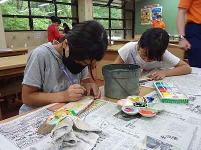 2日目は、木のペナント作りで思い思いの作品を作ることができました。帰る前に雨が上がったので、少しだけ外の散策を行いました。