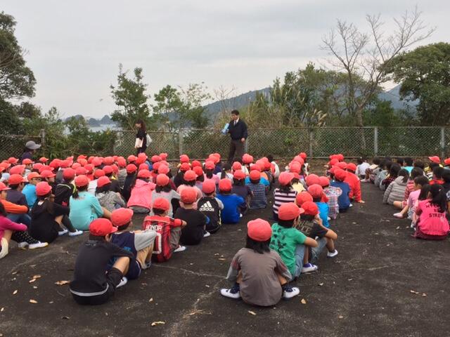 5月13日(金)に地震・津波を想定した避難訓練を実施しました。「おかしも」を守って、裏の丘に6分間で避難することができました。場合によっては10分から15分以内に津波が押し寄せることが予想されます。日頃から対応を各家庭でも話し合っておいてください。