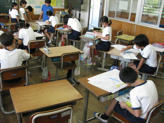 学年別に取り組む課題が示され、午前中の時間で仕上げて作品鑑賞を行うまでのプログラムとなっていました。