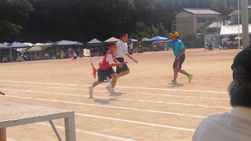 トラックは、児童であふれていました。バトンパスうまくできたかな。