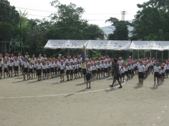 今日の天気予報は、「雨」。その前に少しでも練習をしておこうといつも以上に多くの子どもたちが運動場に出ていました。