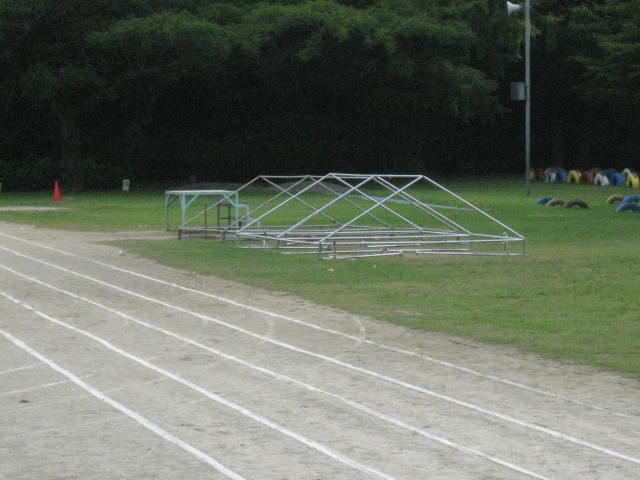 草刈りだけでなく、コースロープ張りや入退場門の組み立てなども行っていただき、すっかり運動会の下準備ができた状態となりました。