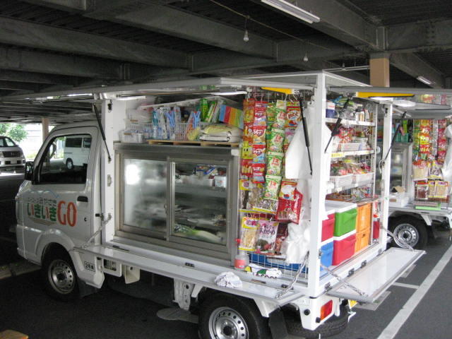 お店の前には軽トラックを改造した移動販売車が出発の準備を進めていました。鯛名や黒岩方面などに出かけるそうです。1年間からスタートしたとのことでた。