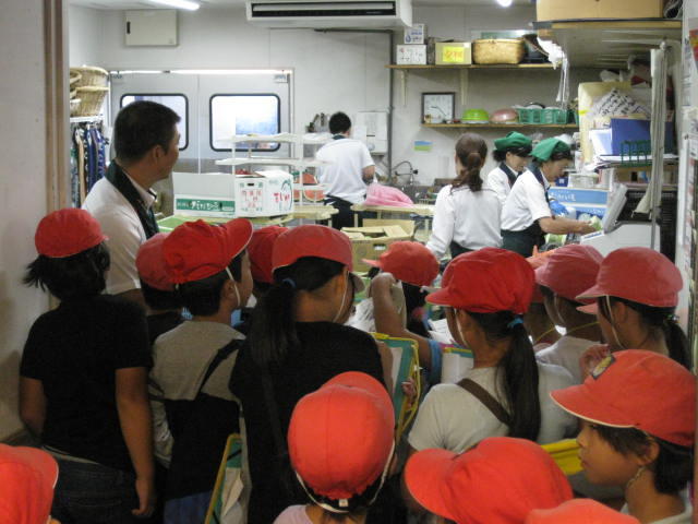 本日、3年生が社会科学習の見学で、Aコープの見学をさせていただきました。開店前から店内に入れていただき、商品の陳列の様子やバックヤードでの準備の様子などを見せていただき、質問も答えていただきました。