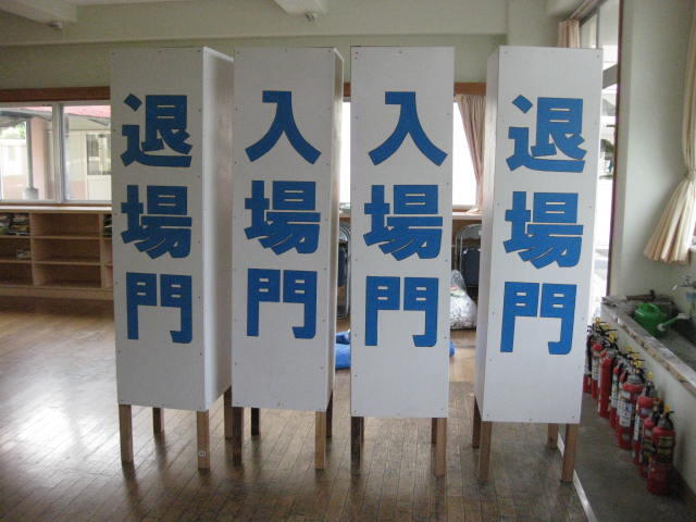 長年使用してきました入場門・退場門の傷みがひどくなり、今年それぞれの門を新しく作り替えることになりました。