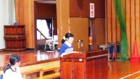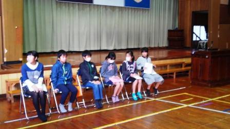 6年生(卒業生)のいない体育館は、何だか広く見えて寂しさを感じました。その後、3年生と1年生の代表児童に作文を発表してもらいました。