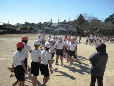 4年生が土々呂幼稚園を訪問して、園児との交流を行いました。この活動は総合的な学習の時間のプログラムの一つとして行ってきています。園児の喜ぶような遊びを考えて道具を作り、遊び方の説明をしたて交流をはかるもので、もう20年以上続いている活動です。