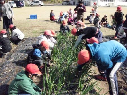 今日は「JAのべおか」の方々にお越しいただいて、玉ネギの収穫を三年生が行いました。
