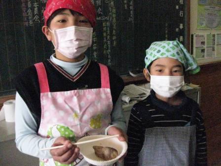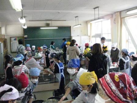 今日の給食には「ケーキ」がついていました。明日は6年生の卒業式です。小学校最後の給食をみんなで輪になって食べていました。土々呂種学校に進学する人は、この学校で作る給食を食べられますが、その他の学校に進学する人にとっては最後の給食となります。
