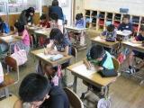 朝の体操の時間に5年生の教室をのぞいてみました。