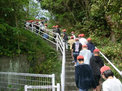 今回は、避難先を2か所に分け、非常階段をのぼって避難する練習をしました。