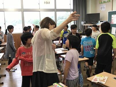 本日は、5,6年生の外国語の授業にALTのエリンさんが、来校して一緒に活動しました。