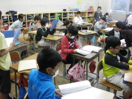 学級では通知表が配られました。緊張した様子もうかがえました。