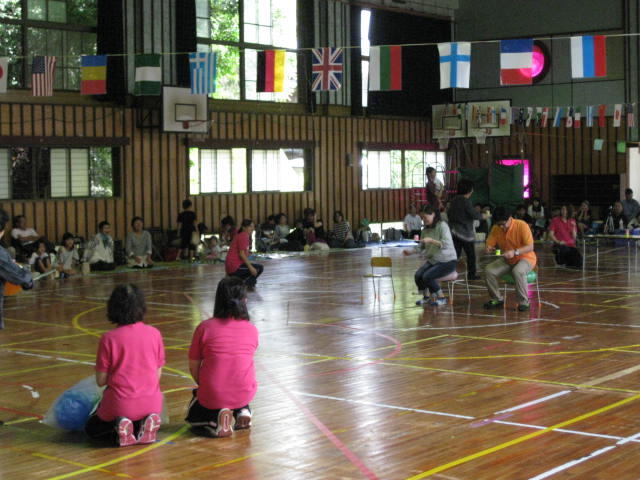 7日は、土々呂保育園が本校の体育館で運動会を行うことになっています。写真は、先日練習にこられたときの様子です。