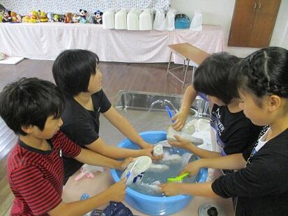 洗濯液をつくり、汚れているところを念入りに洗って、ぴかぴかにしました。