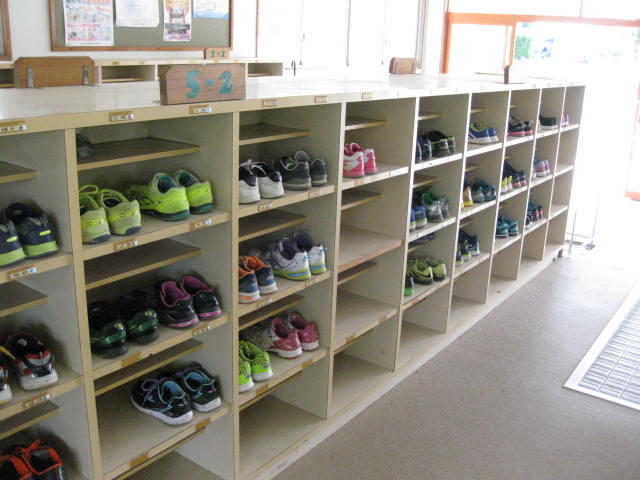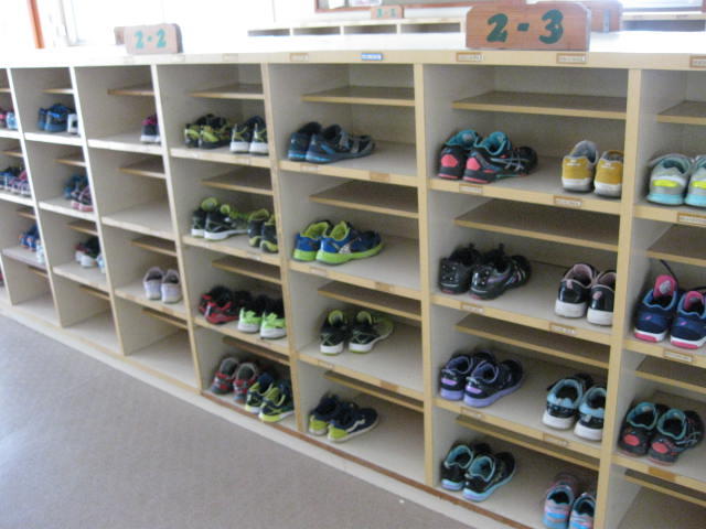 みんなきちんとくつのかかとを揃えていました。こんな下足室を見る