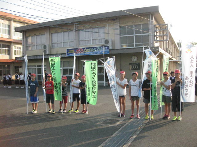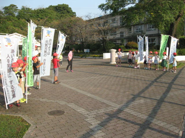 今日のあいさつ運動は、6年1組の当番でした。男女と朝早めに登校し、元気な声を校門に響かせてくれました。