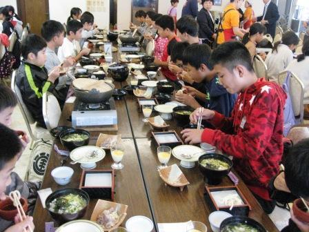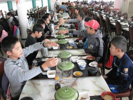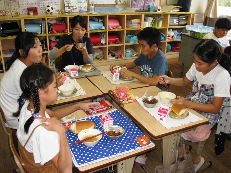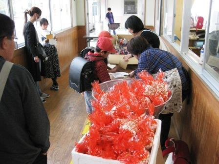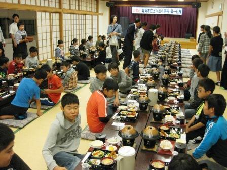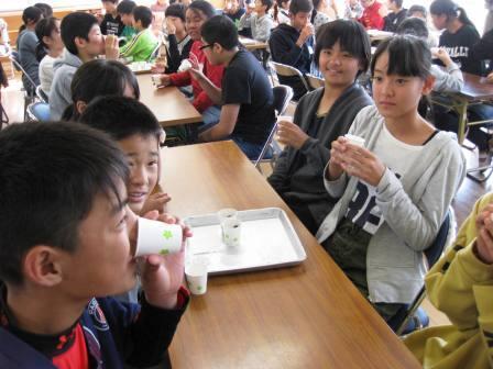 先日、11月生まれの人たちの誕生給食会が開かれました。給食室に1年生から6年生までの11月生まれの子どもたちと職員があつまり、会食会をおこないました。この日は特別にデザートがつくことになっています。今回はゼリーとプリンが用意されていました。グループで好きな方を1個選ぶことになっています。このとき、下級生から先にえらぶことができるのです。