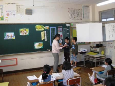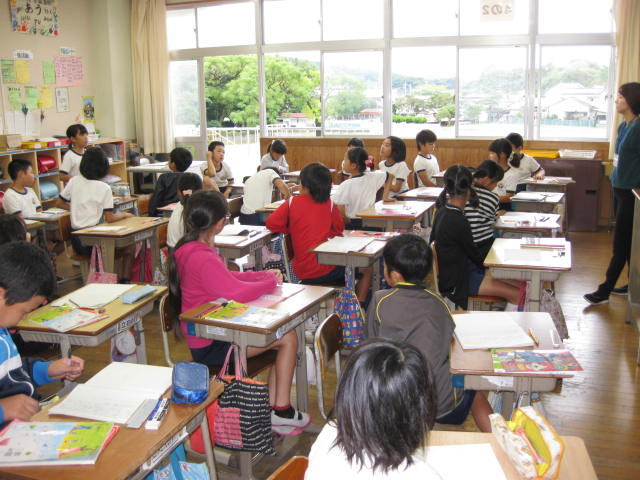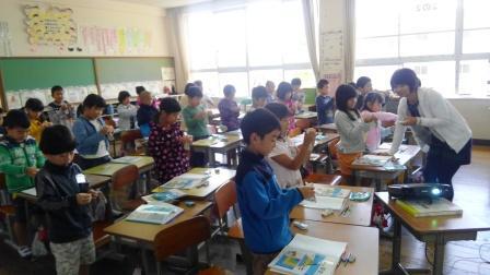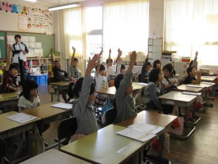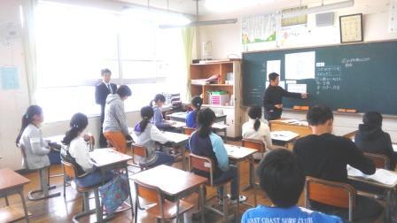 この日は、少人数指導の山口先生と5年2組担任の日高先生が授業を行いました。残りの先生方は、11月29日に行うことになっています。
