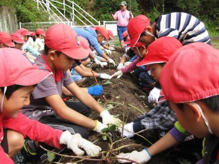 JA延岡よりいただいた「そらとぶたまねぎ」の苗が、台風や大雨の影響で成長が著しくわるいために、改めて苗をいただき、植え替えました。順調に成長して、たくさん収穫ができることを願っています。