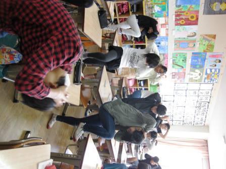 先日 14日に土々呂中学校の8名の先生と幼稚園・保育園から3名の先生にきていただき、授業の様子を見ていただきました。