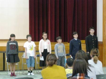 今日の全校朝会では、図書委員会のメンバーが読書祭りの取組について紹介をしてくれました。