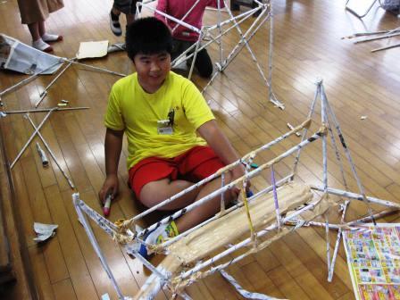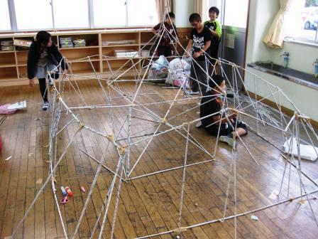 さて、この丸めた新聞紙を使って何をつくるのでしょうか。