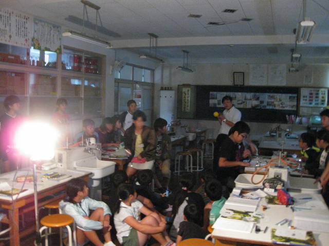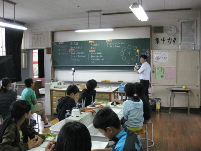 2階の理科室では、柴岡先生が、6年生に月の満ち欠けについて授業をしていました。