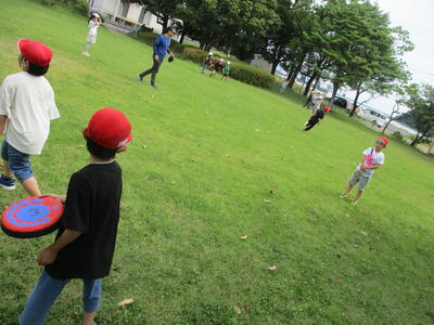 その後、妙田緑地公園で、ドッジビーやバレーボール、大縄跳び、四つ葉のクローバーさがしなど、友達と楽しく元気いっぱい遊ぶことができました。