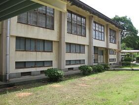 運動場の緑と樹木や校舎の影が目にとびこんできます。