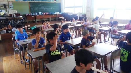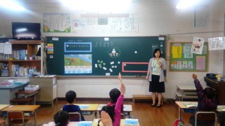 一年生もしっかり算数の勉強を頑張っていました。手の挙げ方が素晴らしいですね。