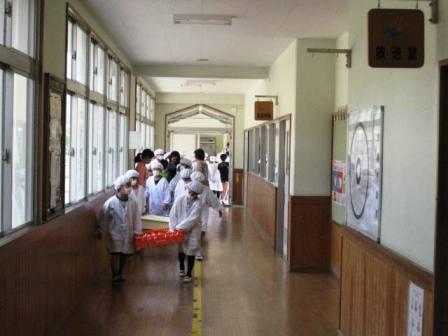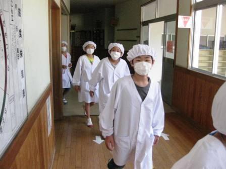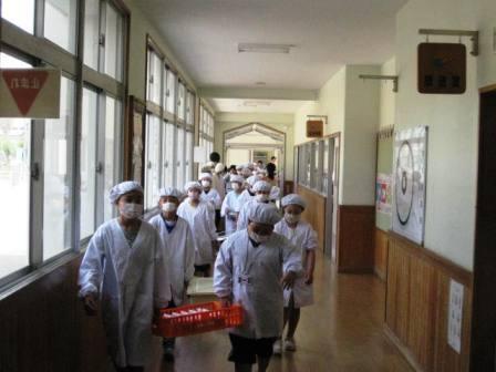17日から1年生も給食が始まりました。6年生の給食当番さんが用意してくれている間も静かに待つことができていました。