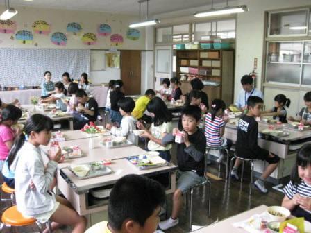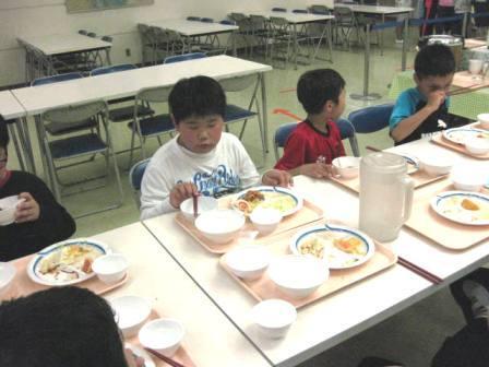 給食時間は友だちとお話をして楽しい食事の時間になったようです。