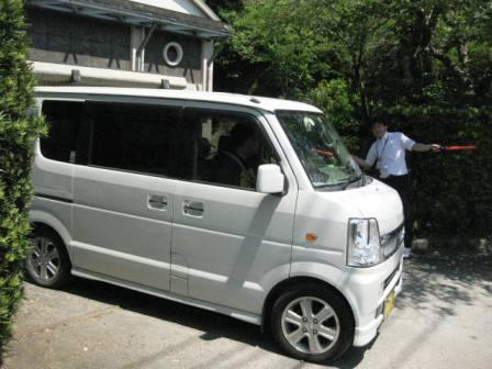 雨が降り出しました。駐車スペースも雨で光ってきています。