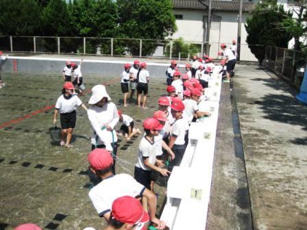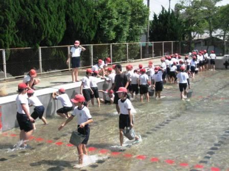 実際に体操服を着て泳ぐことは大変で、子どもたちが「服が重くて疲れた。」とか、「泳げない」という声が出ていました。