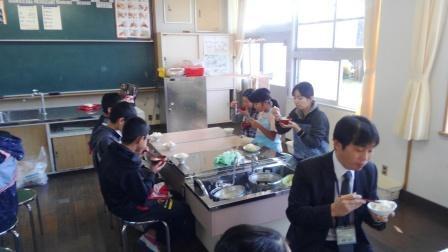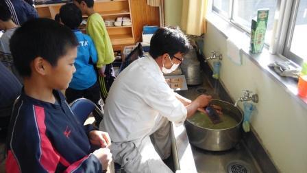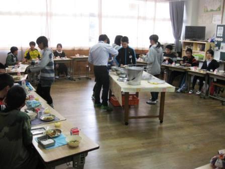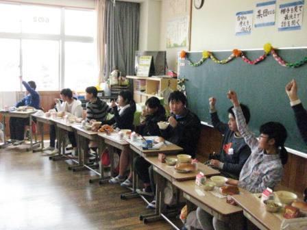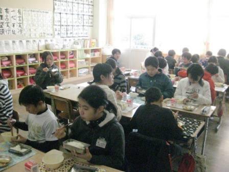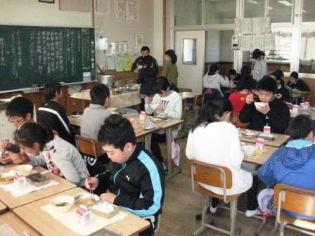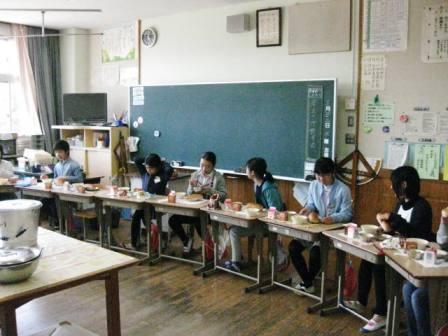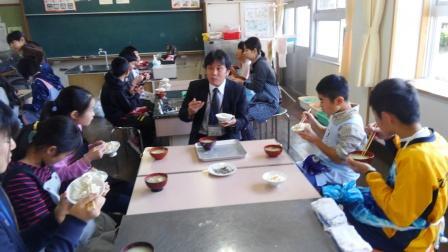 そのあと全学級の授業を見ていただき、給食も食べていただきました。