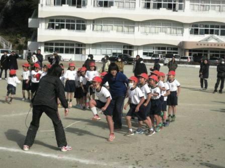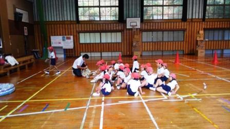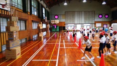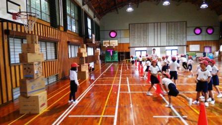 3年生の走り幅跳びの授業でした。助走のタイミングやスピード、跳び上がるタイミングなど児童に考えさながら協力して練習を進めて行くといった授業でした。元気な子どもたちの声が体育館に響いてました。