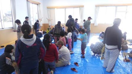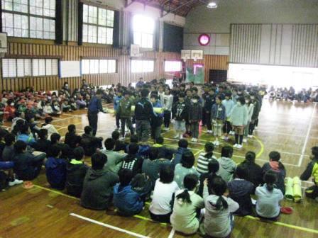 4年生は式場周辺の清掃活動・5年生は体育館を中心に式場づくりに頑張りました。