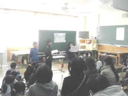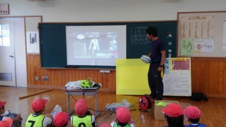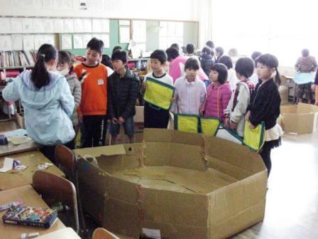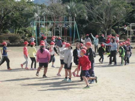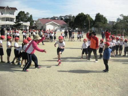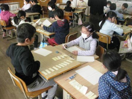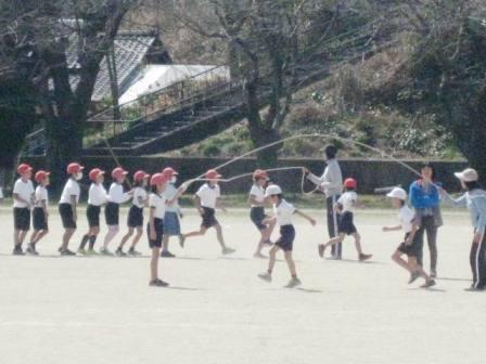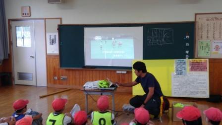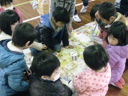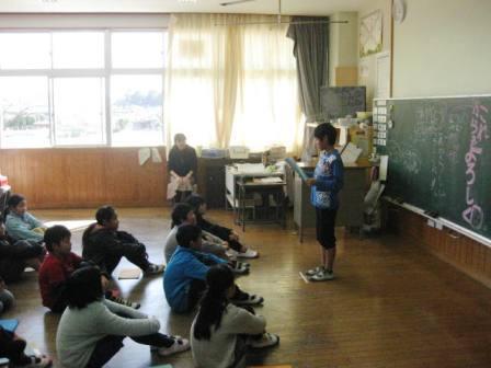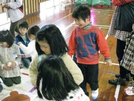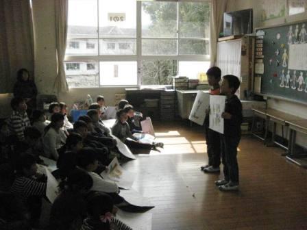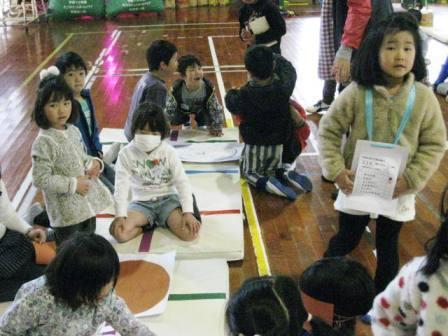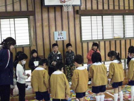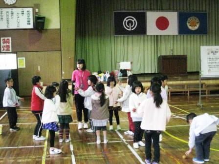 4年生が土々呂幼稚園を訪問して、園児との交流を行いました。この活動は総合的な学習の時間のプログラムの一つとして行ってきています。園児の喜ぶような遊びを考えて道具を作り、遊び方の説明をしたて交流をはかるもので、もう20年以上続いている活動です。