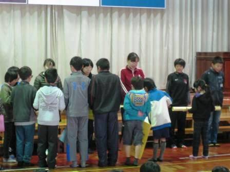体育館で修了式を行い、各学年の代表者に修了証書を手渡しました。