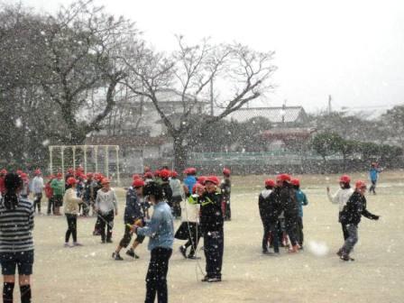 昨日卒業した子どもたちが 運動場の清掃に来てくれました。