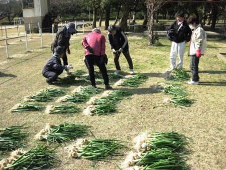 今日は「JAのべおか」の方々にお越しいただいて、玉ネギの収穫を三年生が行いました。