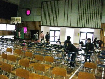 職員も総出で会場設営を行っています。明日の卒業式の準備ももうすぐ終わります。あさ!いよいよ卒業式本番です。