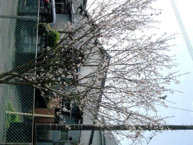 卒業の日に目にとまった校庭の桜の木がありました。プール横の1本です。この桜の木にだけ花が咲いていました。
